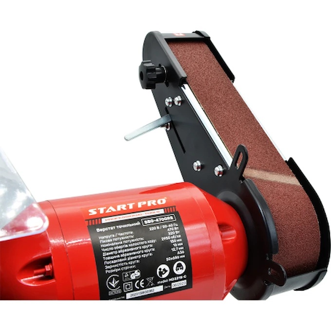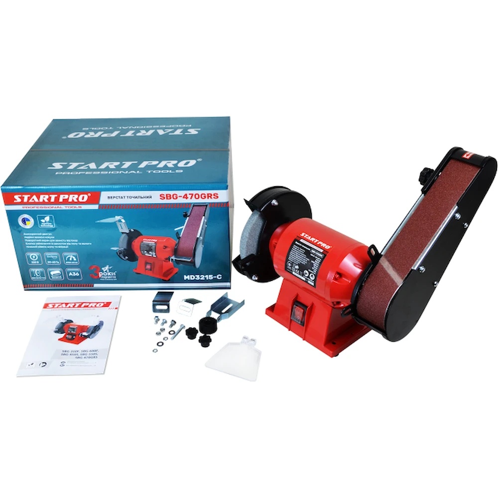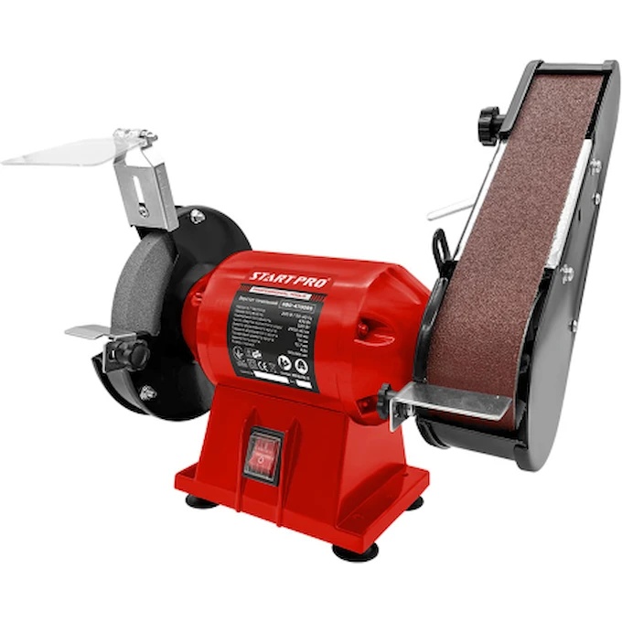 Точильный станок Start Pro SBG-470GRS — мощный (470 Вт) точильно-шлифовальный станок с диском 150 мм и лентой 50×686 мм. Скорость вращения — 2950 об/мин. Предназначен для заточки инструментов и шлифовки металла и дерева. Оснащён защитными кожухами, отличается низким уровнем шума. Гарантия — 3 года.