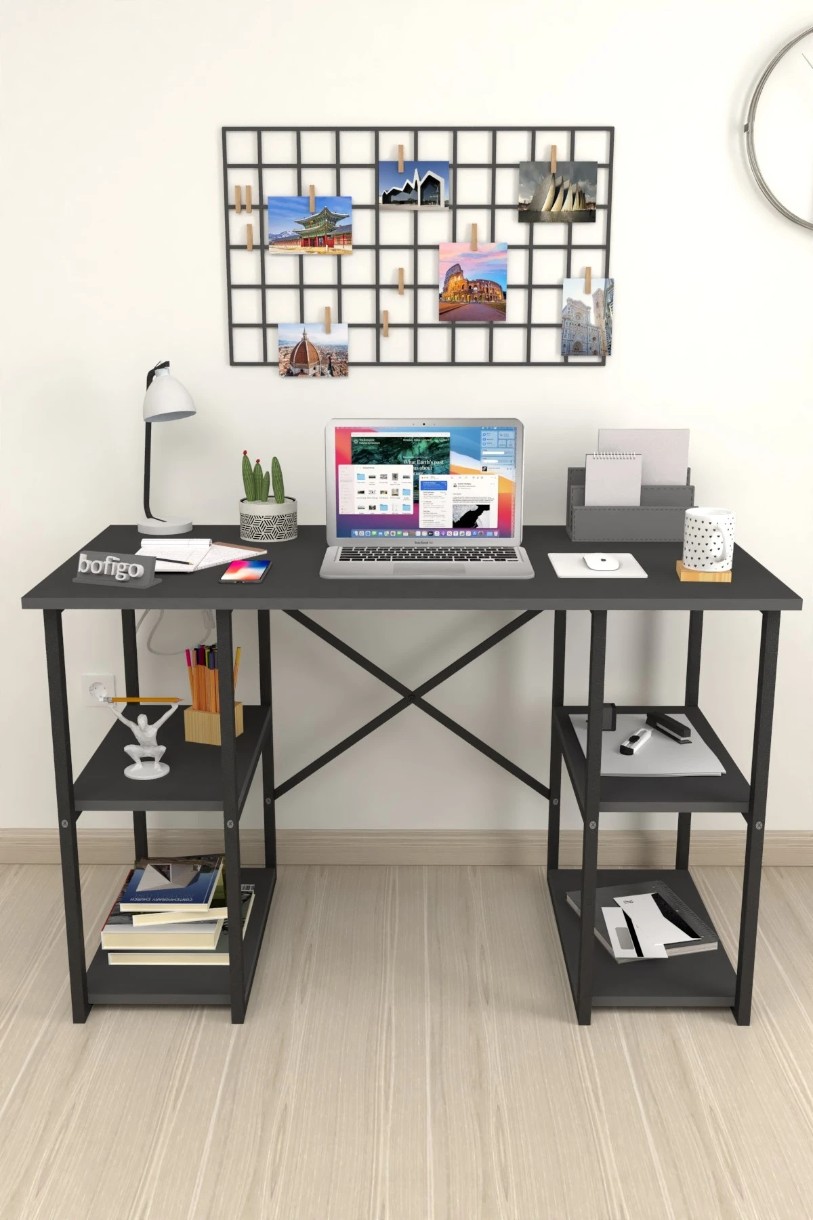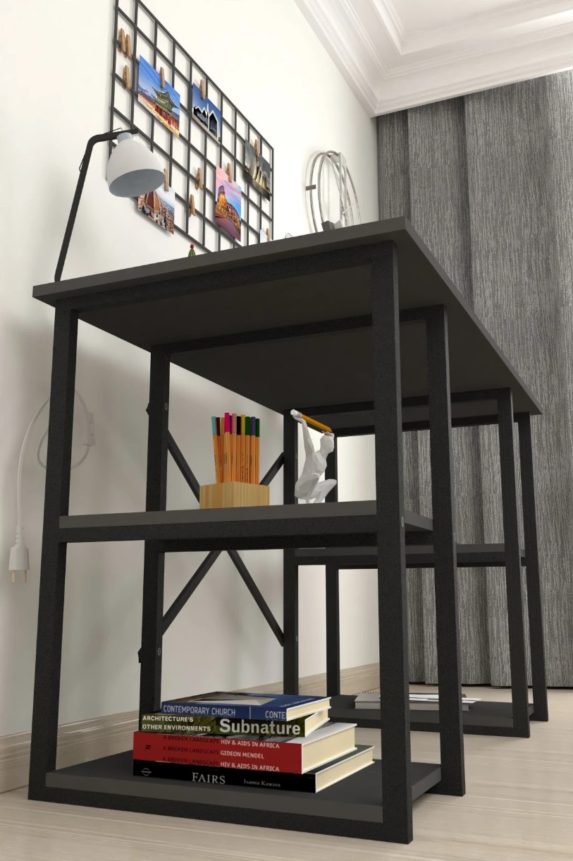 Рабочий стол с 4 полками — это практичное и современное решение для организации рабочего пространства дома или в офисе. Функциональный дизайн сочетает удобную рабочую поверхность и полки для хранения книг, документов и аксессуаров.
