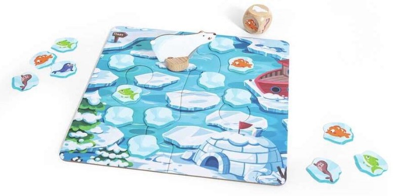 Помогите Фрости, белому медведю, добраться домой в целости и сохранности, по пути захватив еду. Эта простая настольная игра отлично подходит для развития памяти и распознавания образов у детей от 3 лет и старше.