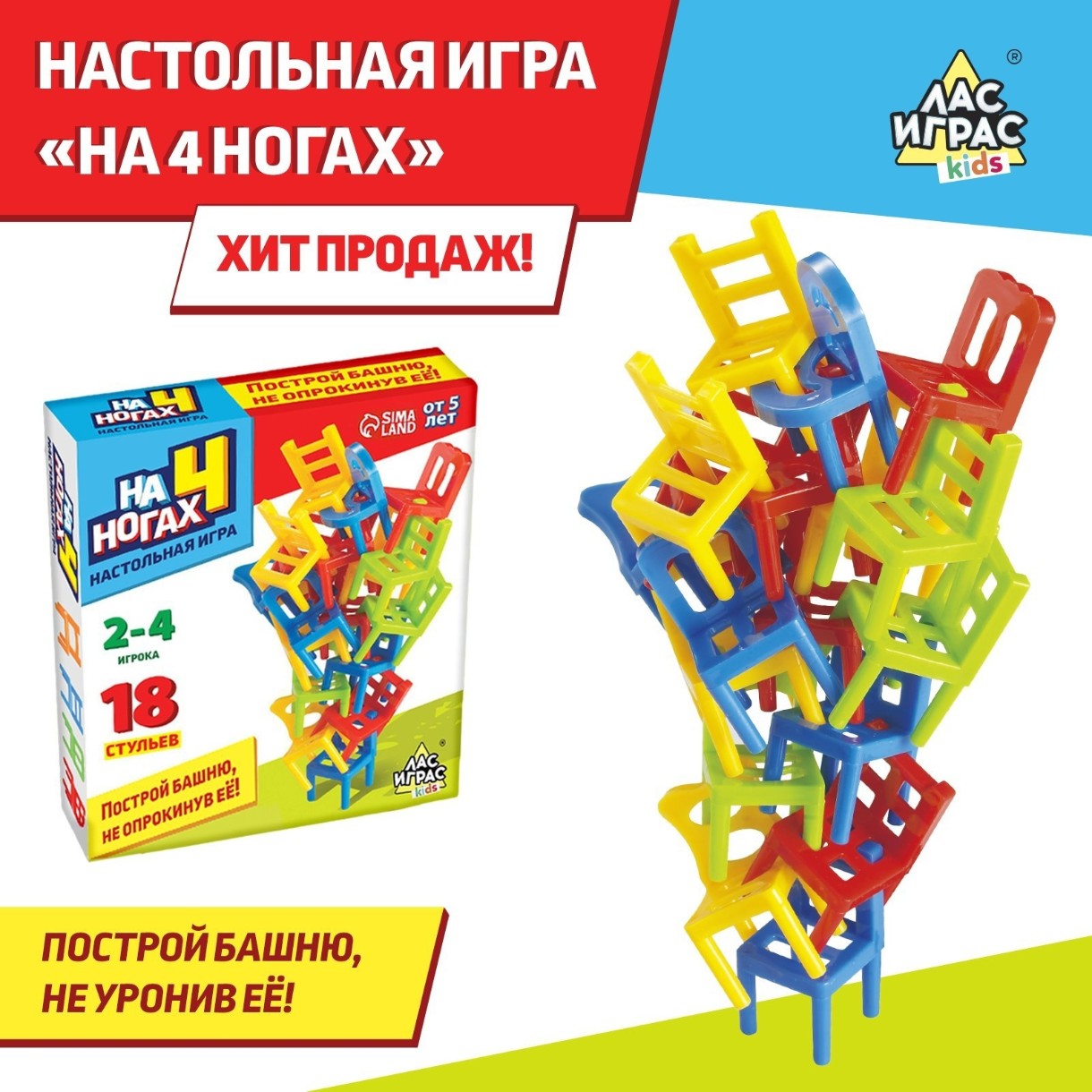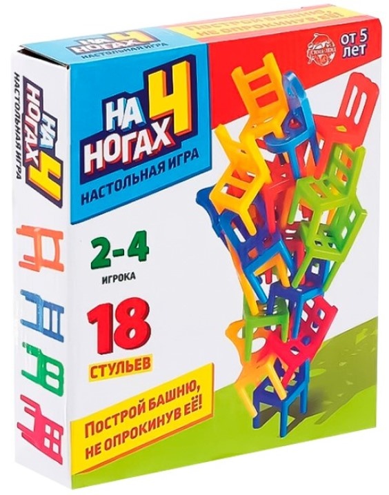 С настольной игрой «На 4 ногах» ребёнок прокачает ловкость, координацию движений и логическое мышление. Ведь, чтобы не уронить башню, нужно продумать, где расположить стульчик.