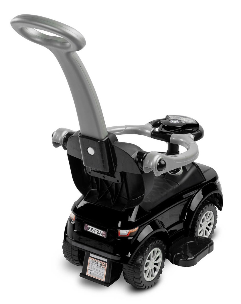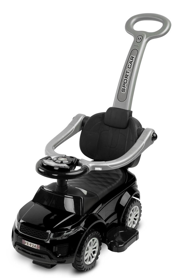 Sport Car Rider от Toyz – незаменимый спутник в прогулках. Благодаря своему дизайну его можно легко адаптировать к потребностям вашего ребенка. Это может быть коляска, ходунки и обычный толокар – достаточно снять соответствующие элементы. У водителя есть рулевое колесо с питанием от аккумулятора, подсветкой и звуком, а также очень полезный отсек для хранения вещей под сиденьем. Приподнятые поручни защищают малыша от падения, а также блокируют возможность поворота передними колесами.
