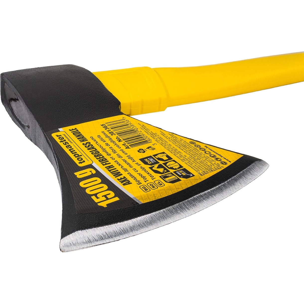 - Топор с рукояткой из стекловолокна 1500 g TMP — это прочный и функциональный инструмент, созданный для надежной резки, колки дров и различных работ как в доме и саду, так и при работе на открытом воздухе.