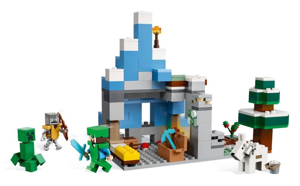 Игроки Minecraft узнают локации Frozen Peaks и Taiga и будут стремиться использовать свои навыки Minecraft для добычи угля, железа и изумрудной руды, которые лежат подо льдом. Дети должны построить безопасное убежище и собрать еду, прежде чем они начнут добычу полезных ископаемых. Когда легендарные противники, Creeper™ и бродяга, подходят слишком близко, дети могут сбежать через опасную пещеру из каменных отложений, использовать TNT, чтобы взорвать гору, чтобы добраться до своего убежища, или использовать функцию тарана козла, чтобы сбить враждебных мобов с поля. край скалы! Несколько забавных функций и целый ряд аутентичных аксессуаров гарантируют, что приключения Minecraft никогда не закончатся.