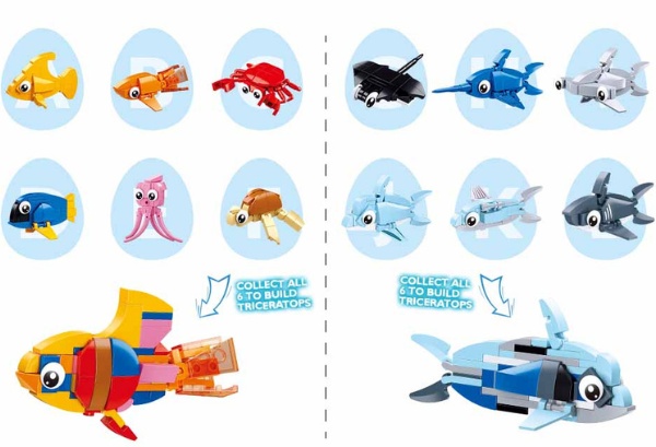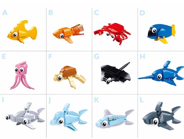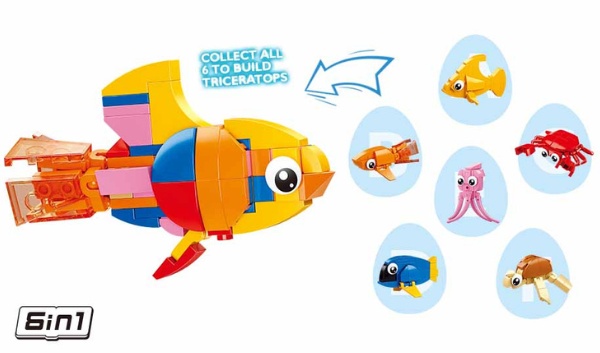 Конструктор-сюрприз «Рыбки», из серии QBricks , это увлекательная серия из 12 видов рыб, который спрятаны в яйцах. Из 6 маленьких рыбок можно получить одно большое.