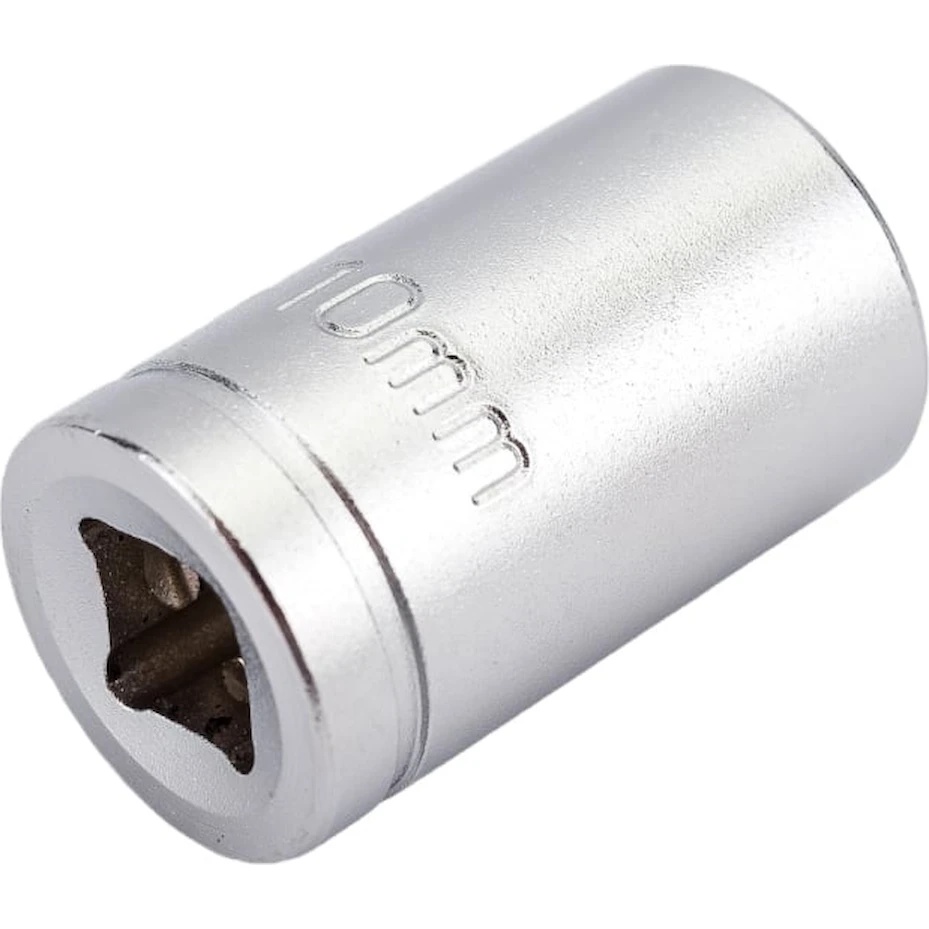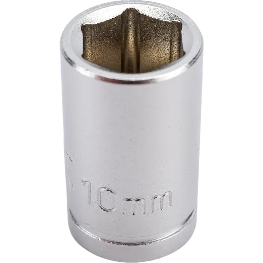 HOEGERT TECHNIK Торцевая головка шестигранная 1/4", 10 мм, CrV50BV30, DIN 3124, ASS-drive HT1A010: Надежный помощник для точного монтажа! Торцевая головка HOEGERT TECHNIK HT1A010 предназначена для эффективного монтажа резьбовых соединений с шестигранной головкой. Используется с трещоточным ключом или воротком, обеспечивая надежный и точный захват крепежа.