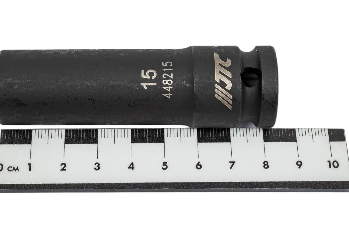 Головка торцевая 1/2” 15 ударная высокая L=82мм JTC 448215 - это компактное ручное приспособление, которое используется для демонтажа различного крепежа, соединяющего конструктивные элементы легкового и грузового транспорта. Также подходит для машин и механизмов, используемых в промышленности, сельском хозяйстве и др. сферах. Данная модель применяется совместно с гаечным ключом или воротком на 1/2"х15 мм. Материал головки - высокопрочная хром-молибденовая сталь.