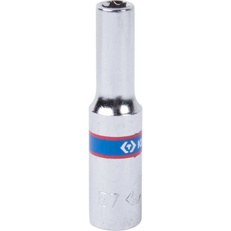 Головка торцевая TORX Е-стандарт 1/4", 50 мм от King Tony — это незаменимый инструмент для любого мастера, работающего с современными крепежами. Она идеально подходит для выполнения различных задач, связанных с ремонтом и сборкой техники, а также для работы с автомобилями. Благодаря высококачественным материалам и точной обработке, головка обеспечивает надежное сцепление с винтами и предотвращает их срыв. Использование данной головки значительно упрощает процесс работы, особенно в труднодоступных местах.