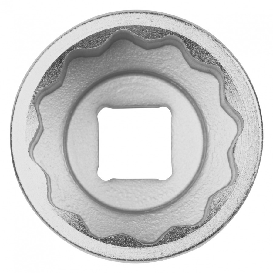 Торцевая головка стандартная двенадцатигранная 1" KING TONY предназначена для монтажа и демонтажа резьбовых соединений (гаек, болтов) в автосервисах, на станциях технического обслуживания (СТО) и в производственных условиях. Изготовлена из высокопрочной хромованадиевой стали (Cr-V) по технологии горячей ковки с последующей термообработкой, что обеспечивает высокую прочность, износостойкость и устойчивость к коррозии благодаря хромированному покрытию. Двенадцатигранный профиль гарантирует надежное сцепление с крепежом, предотвращая соскальзывание, и подходит для профессионального применения. Посадочный квадрат 1" совместим с трещотками, воротками и динамометрическими ключами.