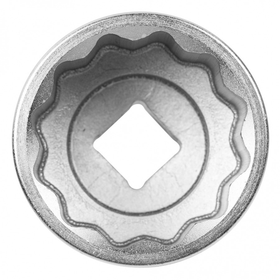 Торцевая головка стандартная двенадцатигранная 1" KING TONY предназначена для монтажа и демонтажа резьбовых соединений (гаек, болтов) в автосервисах, на станциях технического обслуживания (СТО) и в производственных условиях. Изготовлена из высокопрочной хромованадиевой стали (Cr-V) по технологии горячей ковки с последующей термообработкой, что обеспечивает высокую прочность, износостойкость и устойчивость к коррозии благодаря хромированному покрытию. Двенадцатигранный профиль гарантирует надежное сцепление с крепежом, предотвращая соскальзывание, и подходит для профессионального применения. Посадочный квадрат 1" совместим с трещотками, воротками и динамометрическими ключами.