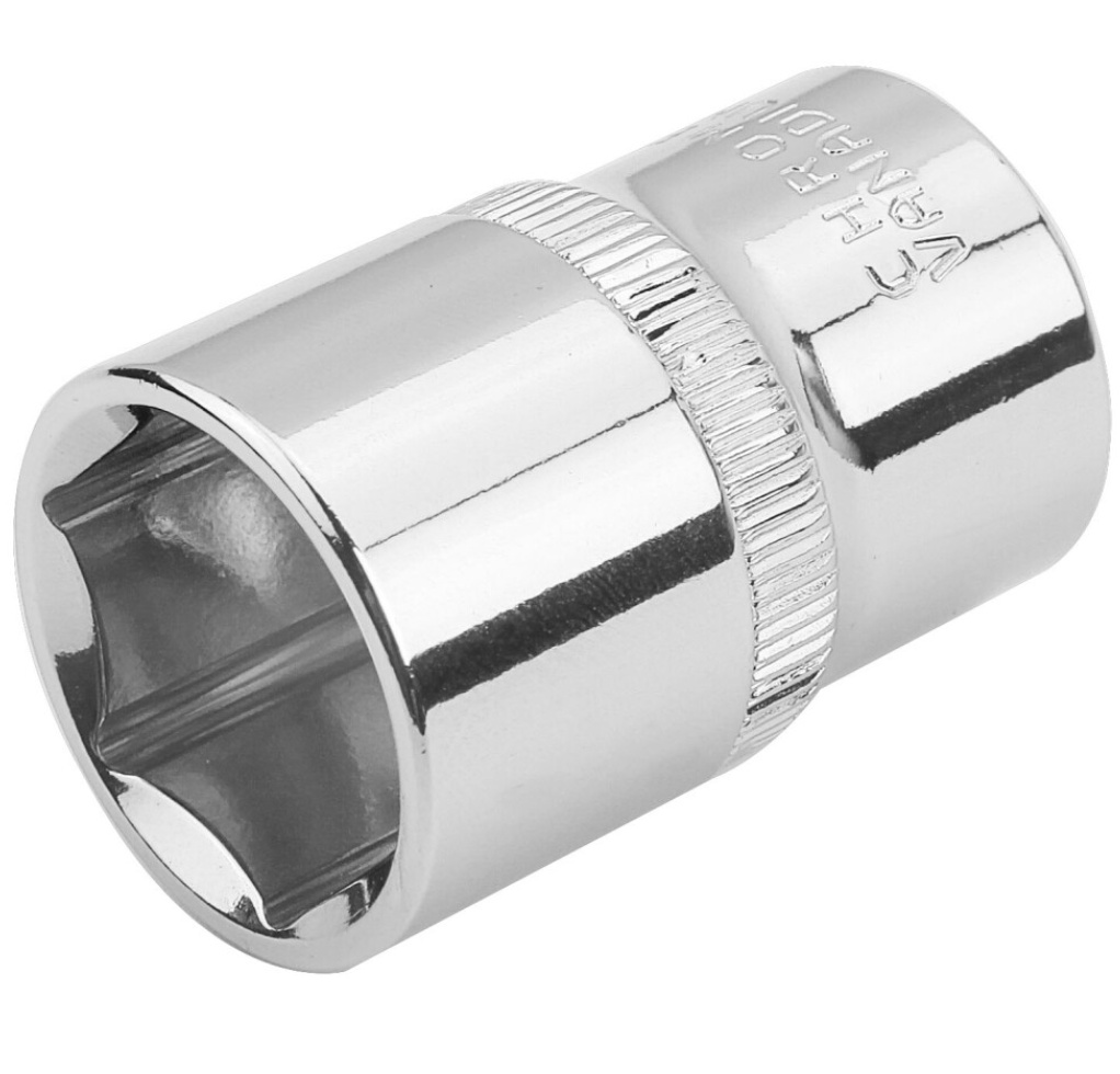 Головка торцевая шестигранная Tolsen предназначена для работы с крепежом. Оснастка изготовлена из хром-ванадиевой стали. Улучшенный профиль головки успешно справляется с крепежом, грани которого деформированы.
