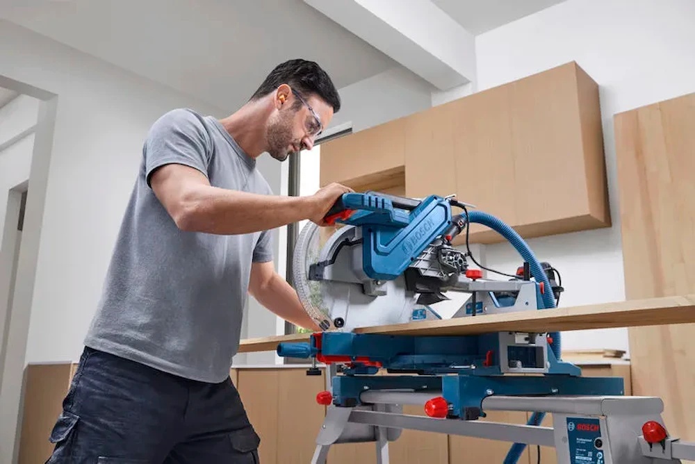 Съёмная опора и крупные удлинители позволяют фиксировать заготовки любых размеров, а мощный двигатель облегчает распил даже крупных деревянных элементов. Инструмент подходит для поперечных и угловых пропилов в древесине и алюминии, что делает его удобным для столярных и монтажных работ.
