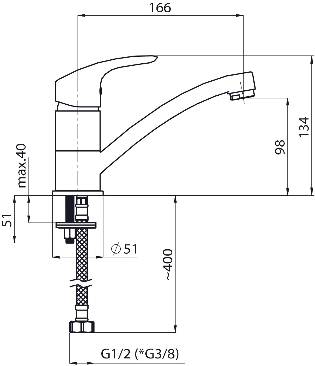 Длина излива166 мм