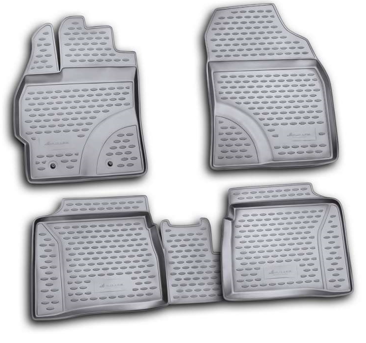Коврики устойчивы к истиранию. Благодаря высоким бортикам, надежно защищают внутреннюю обивку салона от грязи и снега. Передняя часть водительского коврика уходит под педаль акселератора, что исключает нештатное зацепление педали.