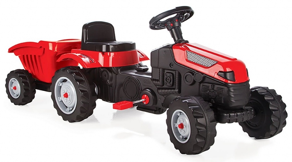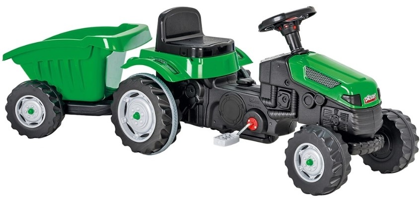 Педальный трактор c Pilsan Active (07-316) предназначен для мальчиков и девочек от 3-х до 7-ми лет. Цепной привод на заднюю ось позволят достигнуть удобства и плавности, аналогичной велосипедной. Рулевое управление реализовано при помощи запатентованного механизма вращения. Руль оснащен клаксоном. Сиденье имеет уникальное запатентованное крепление с 6-тью позициями регулировки. В комплекте с трактором идёт прицеп 07-717 а таком же цвете, как и сам трактор.