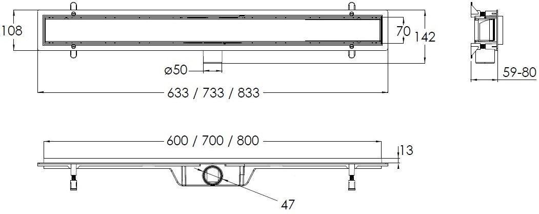 Размер решётки600х70 мм