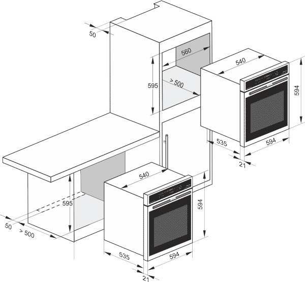 Размеры ниши для встраивания (ВхШхГ)59.5x56x56 см