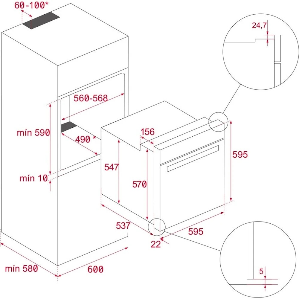 Размеры ниши для встраивания (ВхШхГ)59x56x49 см