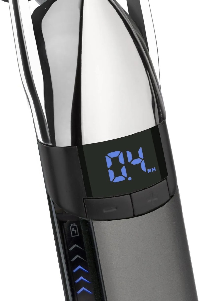 Эта машинка для стрижки бороды оснащена цифровым дисплеем, который показывает оставшееся время работы аккумулятора для большего удобства использования. Она предлагает точность стрижки до 0,2 мм и 24 настройки длины от 0,4 до 5 мм, чтобы удовлетворить любые потребности.