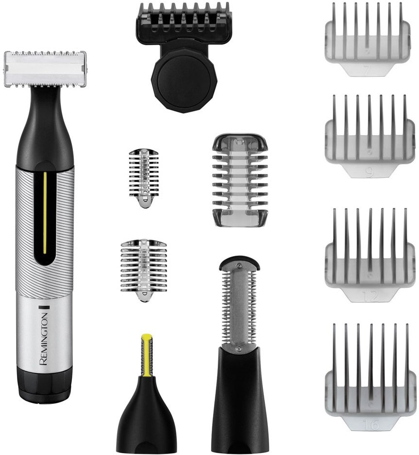 Комплектациялезвие для тела, насадка косметическая щеточка для лица, регулируемый двойной гребень – 0.5-5 мм (10 настроек длины стрижки), 3 фиксированных гребня (1, 2, 3, 5 мм), 3/6/9 мм гребень для тела, 3/6 мм гребень для бровей