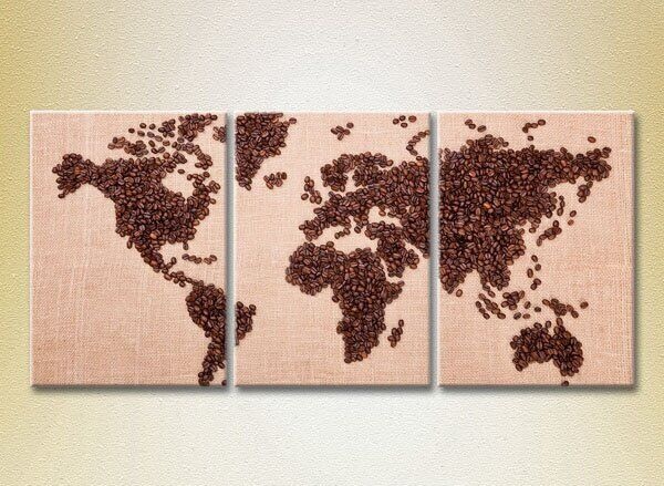 Картина Magic Color Triptych Coffee beans World Map (2698657)