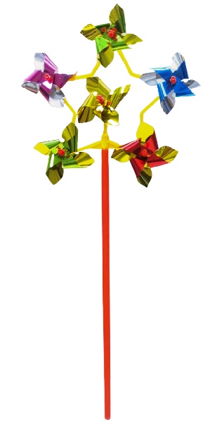 Игрушка состоит из основы в виде 5 маленьких вертушек на яркой палочки.