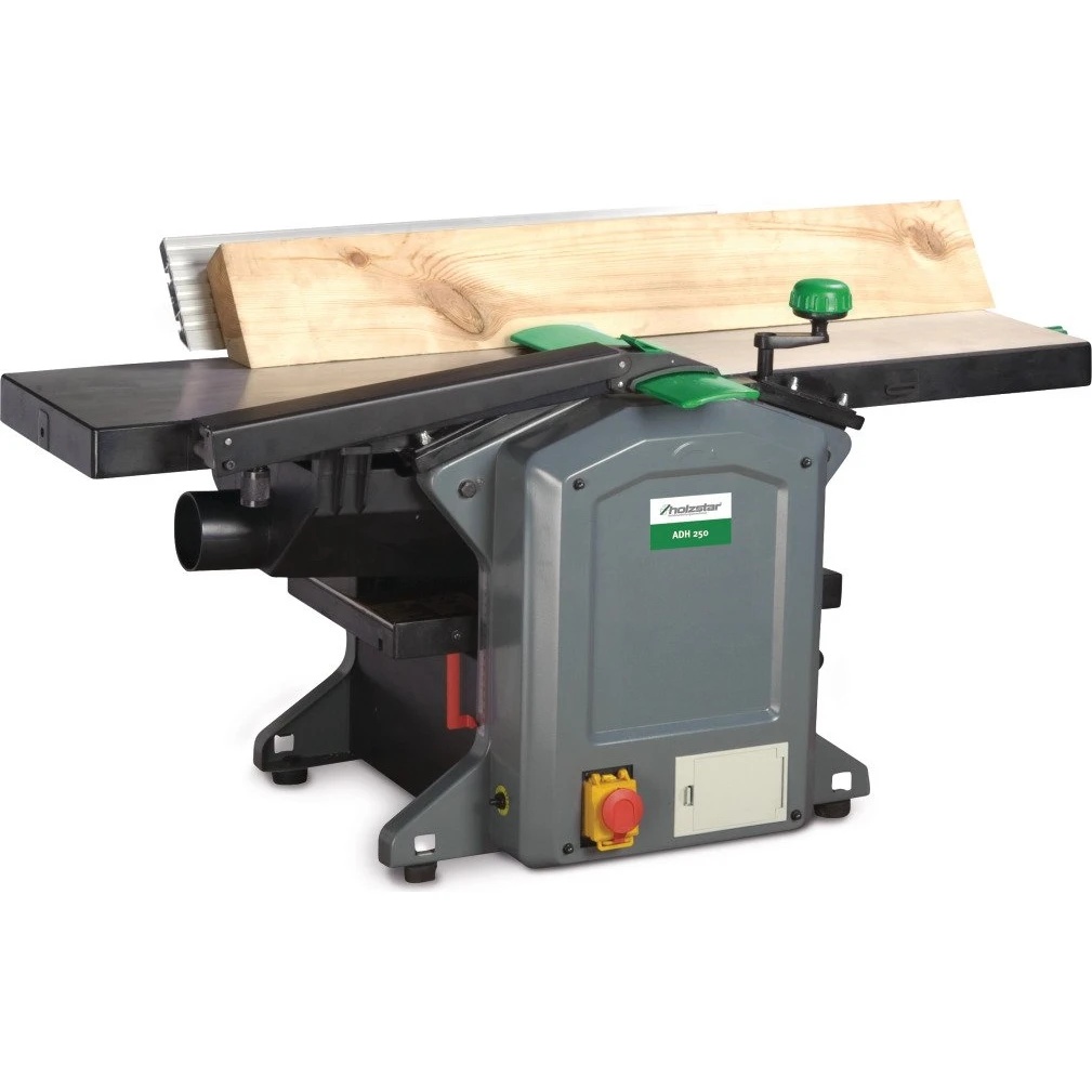 Holzstar ADH 250 (5905250) — это компактный настольный фуговально-рейсмусовый станок, предназначенный для обработки плоских поверхностей деревянных заготовок. Он объединяет функции фугования (создание базовой плоскости) и рейсмусования (калибровка детали по толщине), что делает его популярным выбором для небольших мастерских и домашних мастеров.