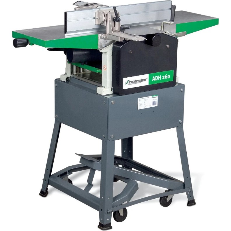 Holzstar ADH 260 (артикул 5903260) — это комбинированный фуговально-рейсмусовый станок, предназначенный для точного фугования под углом 90° и калибровки заготовок из твердого и мягкого дерева. Он оснащен мощным двигателем на 2.0 кВт и литым алюминиевым столом, что делает его подходящим для частных мастерских и хобби.