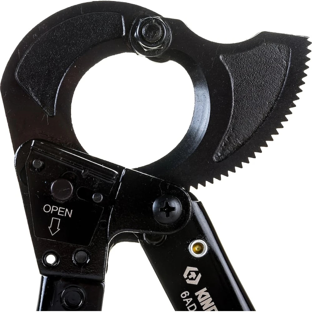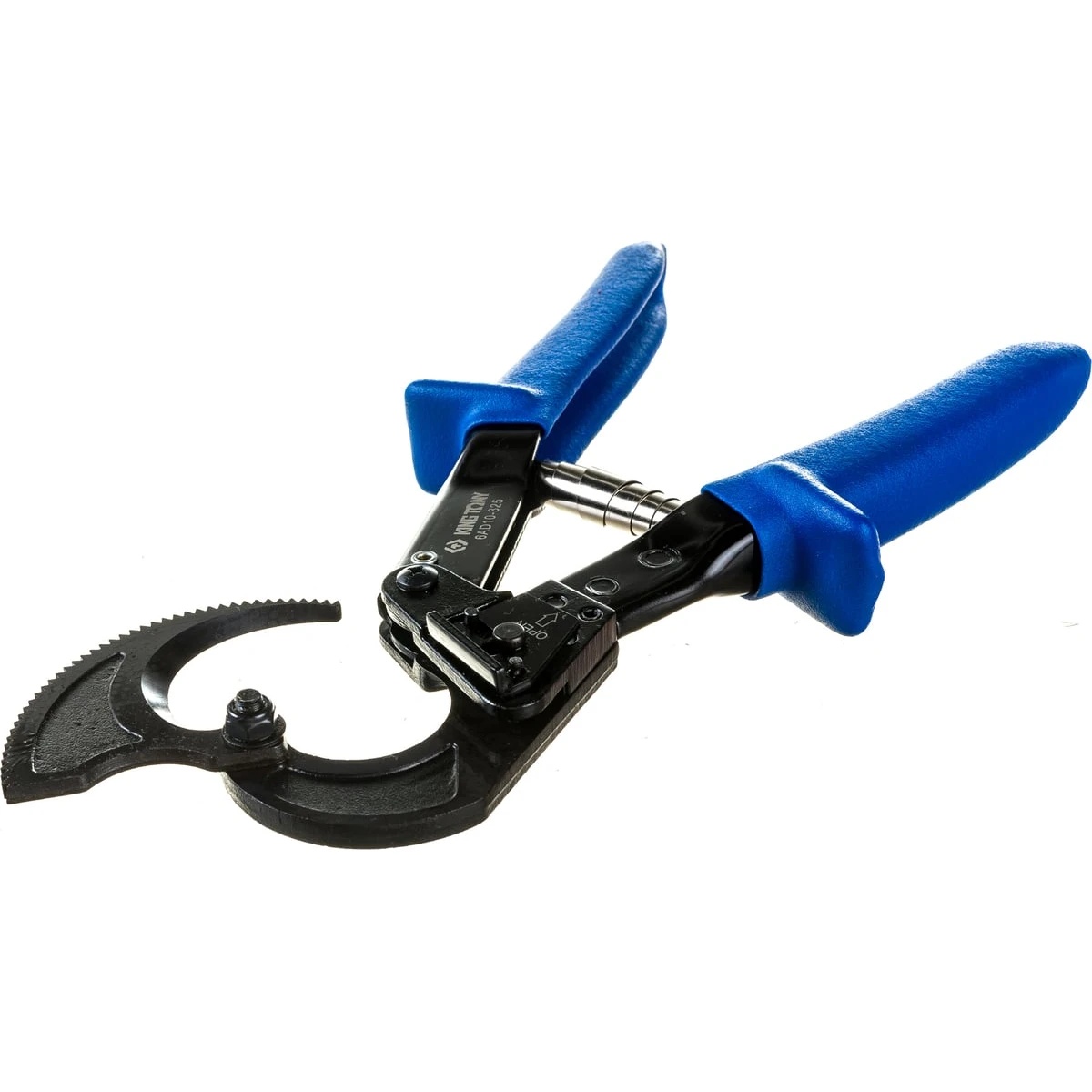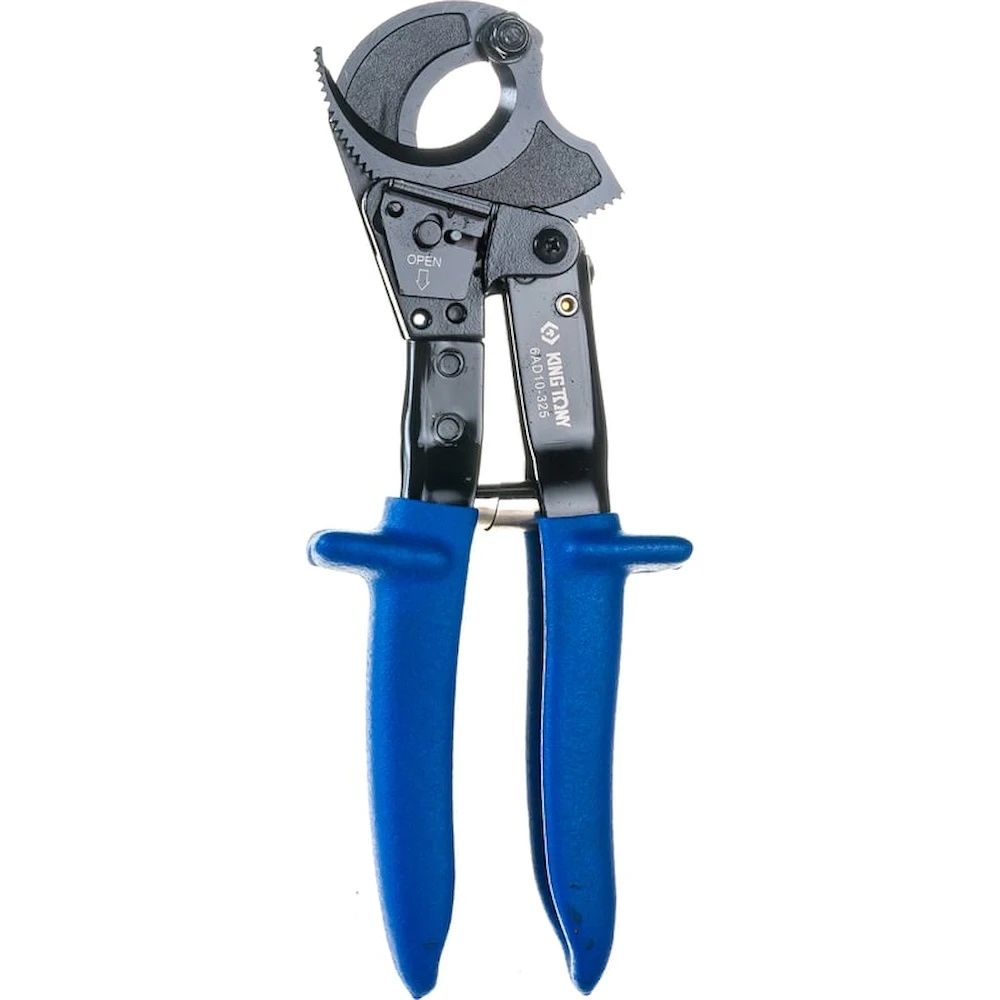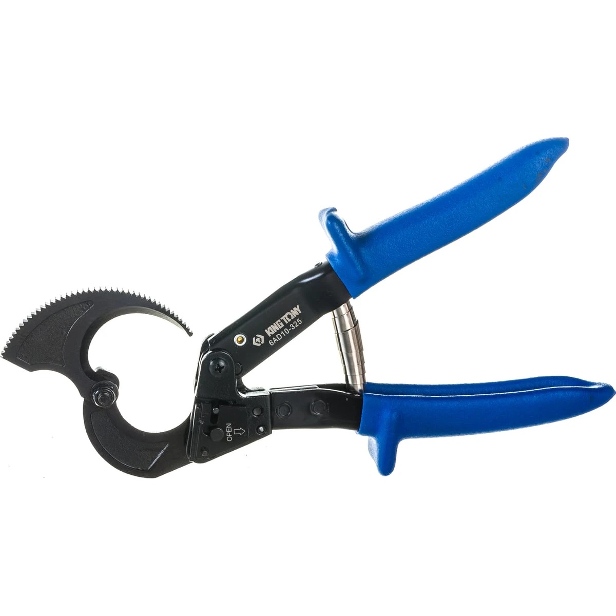 Усиленный кабелерез с трещоткой KING TONY 255 мм 6AD10-325 способен перекусывать многожильные и одножильные кабели. Инструмент оснащен длинными рукоятками, каждая из которых приклепана к губкам двумя клепками.