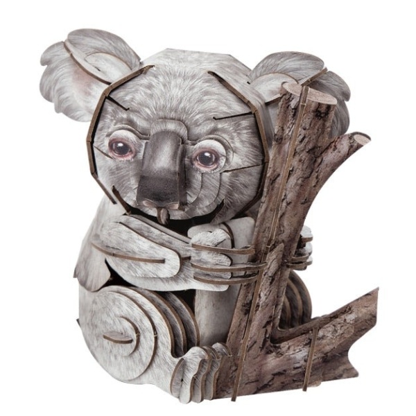 Набор состоит из 60 деталей из переработанного картона, которые легко собираются без клея и инструментов. Шаг за шагом формируется милый коала с подвижной шеей. В комплект входит коллекционная карточка с интересными фактами о коалах и важности сохранения их естественной среды обитания.