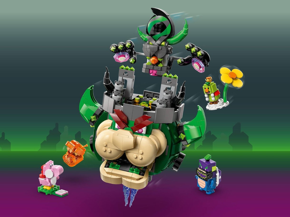 Позвольте детям воссоздать битвы Super Mario Bros™ Wonder и освободить принца Флориана из замка Боузера с этим увлекательным набором LEGO® Super Mario™ «Принц Флориан и Боузер-крепость» (72042). Этот детально проработанный набор станет отличным подарком для мальчиков и девочек от 9 лет и всех геймеров. Он включает в себя фигурки Розового Йоши, Огненной ходячей пираньи, принца Флориана и Чудо-Боузера- младшего для ролевых игр и демонстрации. Поднимите Боузер-крепость с подставки и поставьте ее на место, чтобы увидеть внутреннее пространство, включая камеру для заключения принца Флориана. Поднимите всю крепость с подставки или только верхнюю часть, чтобы она «полетал» вокруг и выстрелила огненным шаром изо рта.