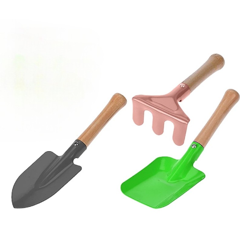 Этот игровой набор идеально подходит для маленьких садоводов. В комплект входят грабли и две лопатки. Инструменты оснащены деревянными ручками, а рабочая часть выполнена из прочного металла. Дизайн безопасный и удобный для детских рук.