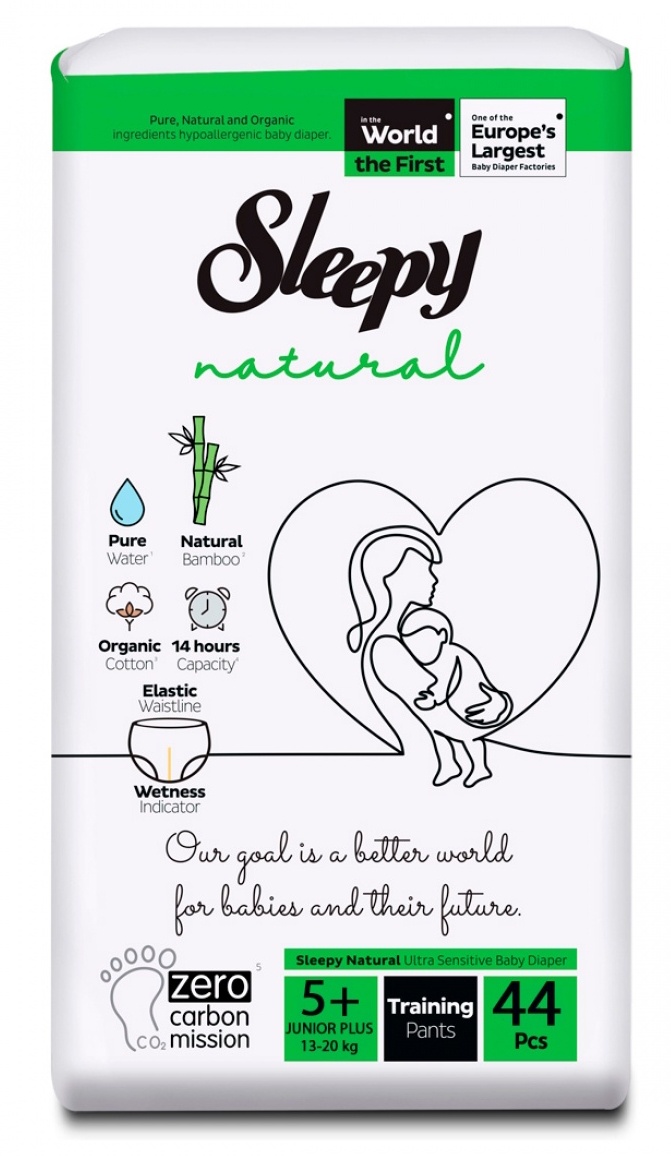 Sleepy Natural — это детские трусики-подгузники, которые выполнены из материалов наивысшего качества, обеспечивают 100% защиту от протеканий и не вредят коже Вашего малыша.