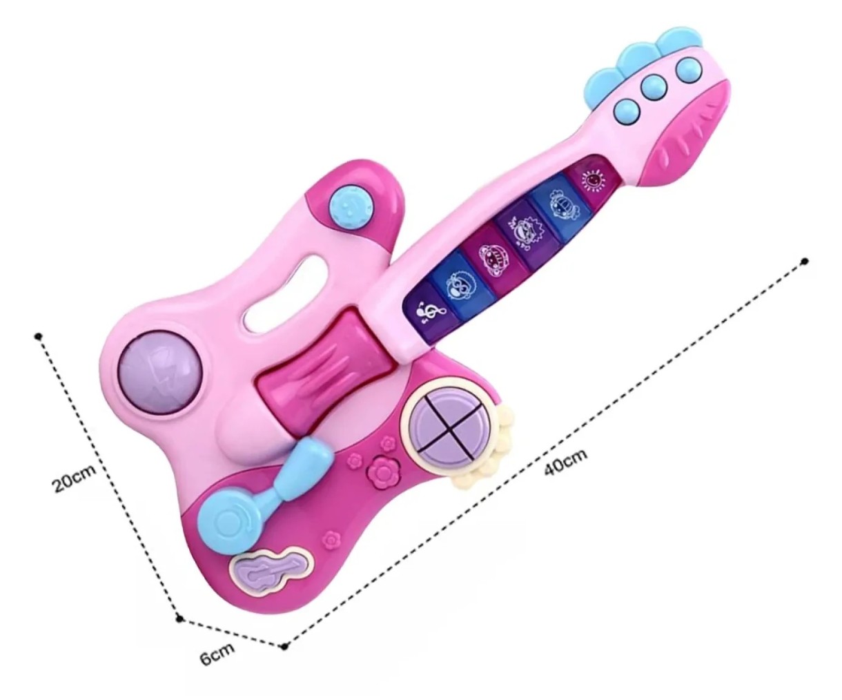Гитара выполнена в ярких и привлекательных цветах, делая ее не только полезным, но и веселым инструментом для обучения.