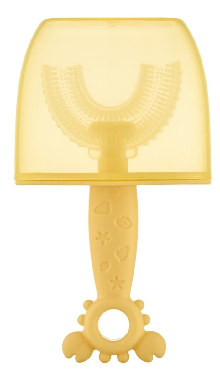 Силиконовая зубная щетка-массажер LITTLE CRAB от ROXY-KIDS превращает процесс обязательной ежедневной чистки зубов в увлекательную игру. U-образная щетка в форме капы покрывает 99% зубов, а мягкие силиконовые ворсинки бережно массируют десны, улучшают кровообращение и удаляют зубной налет. Зубную щетку можно использовать в качестве прорезывателя или для нанесения на десны лечебного успокаивающего геля при прорезывании зубов. Специальный ограничитель предотвращает заглатывание щетки. В комплект входит герметично закрывающийся колпачок для хранения, который защитит щетку от бактерий, микробов и загрязнения.