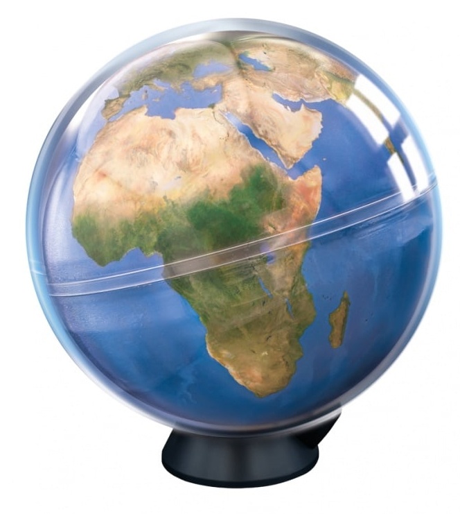 В течение дня открывайте для себя континенты и местность со спутника. В темноте земной шар светится, а крупнейшие города мира освещены так, будто их видно из космоса.