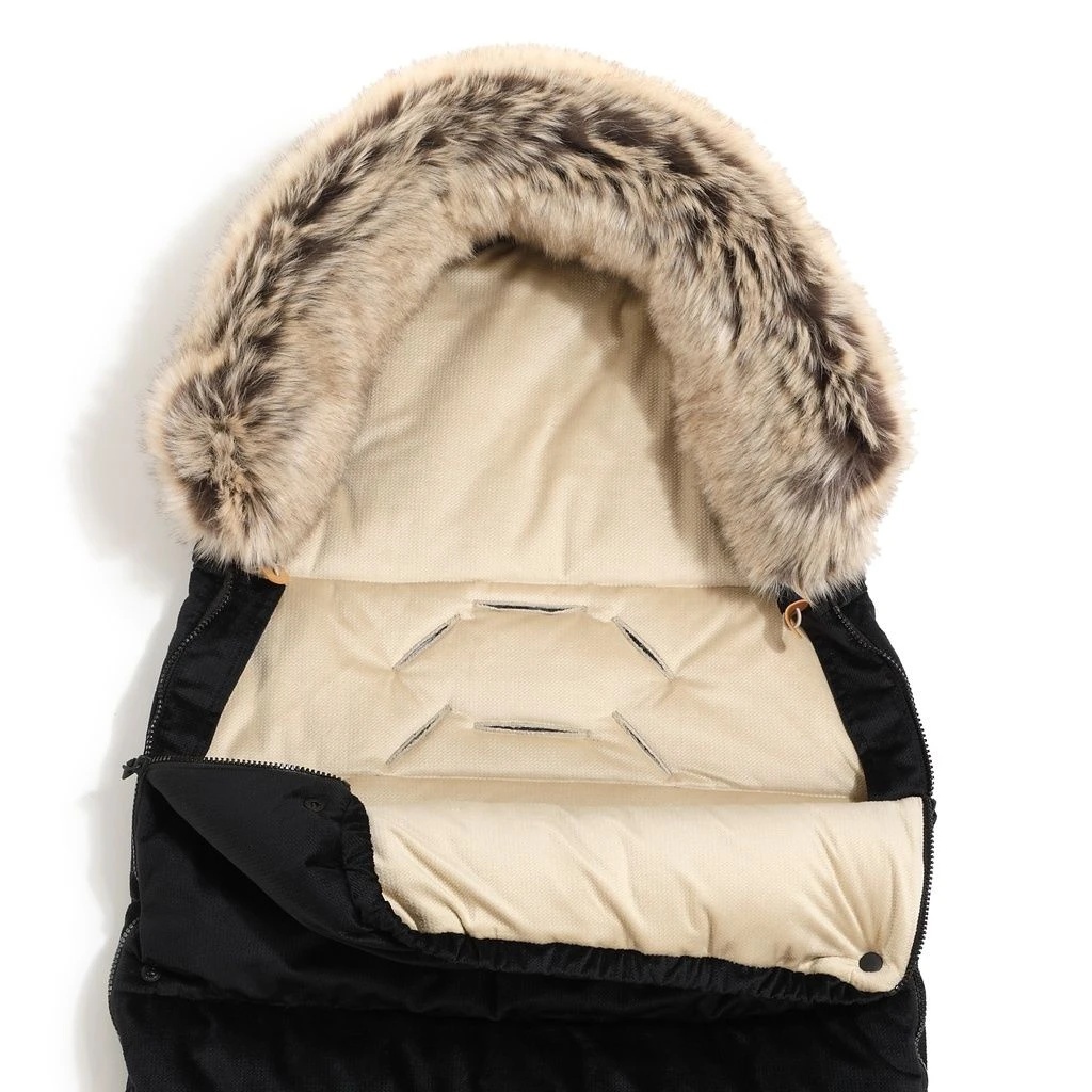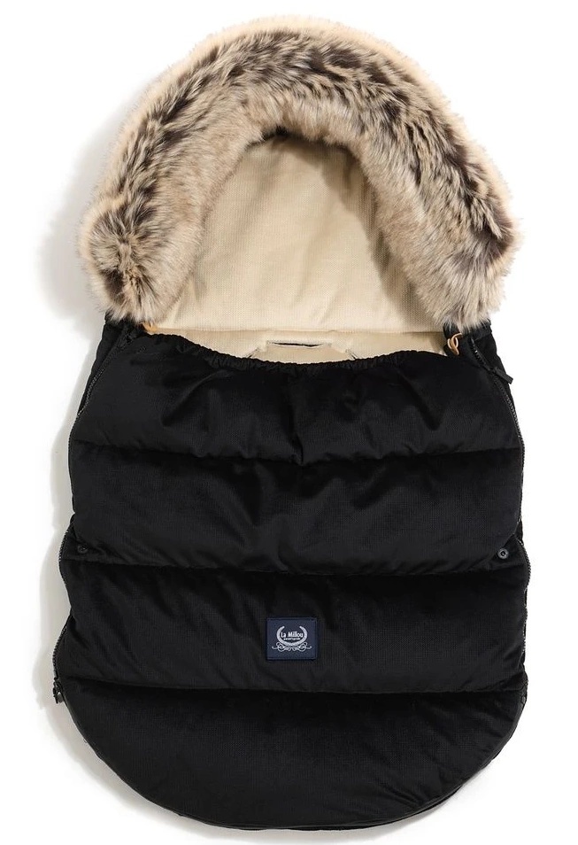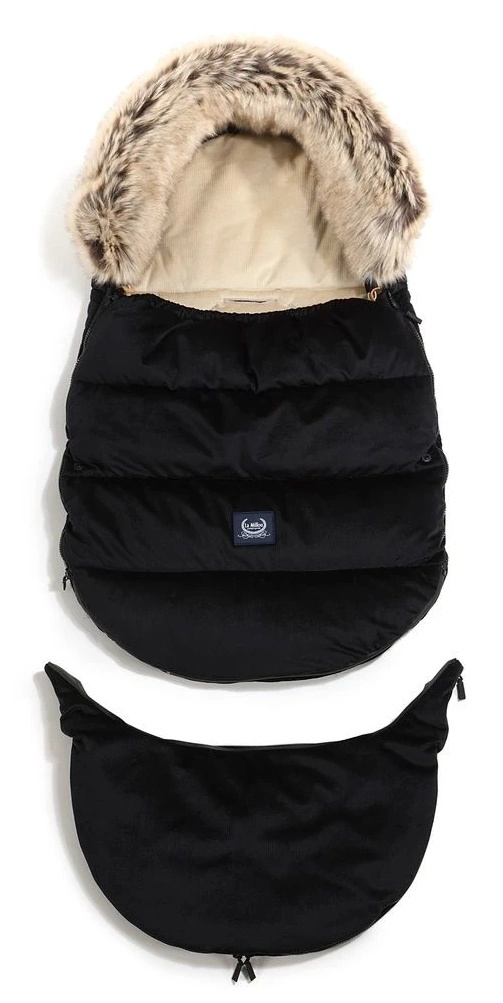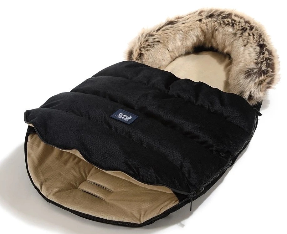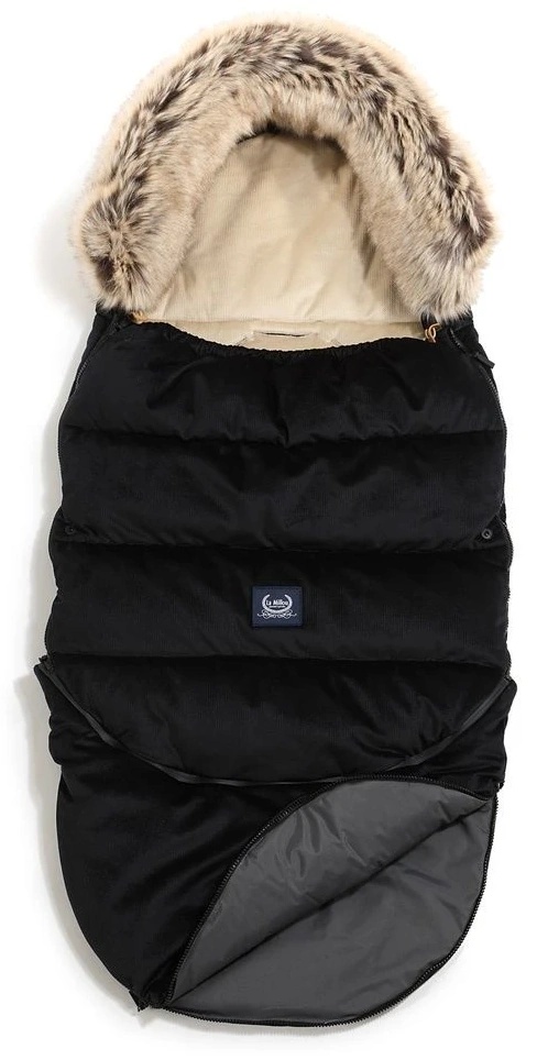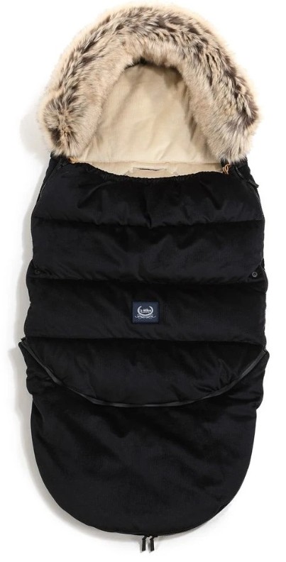 Внутренняя часть спальника — мягкий элегантный бархатный слой. Отверстия в спинке спальника регулируются на 5 — шеститочечная система безопасности в большинстве колясок, в том числе с несъемным Cybex Priam 4.0. ремни . Регулируемый капюшон обеспечивает тепло и комфортную защиту головы и дополнительно отделан съемным мехом. В верхнюю часть спального мешка вшит тканевый элемент, который при размещении на спинке коляски предотвращает скольжение спального мешка во время использования.