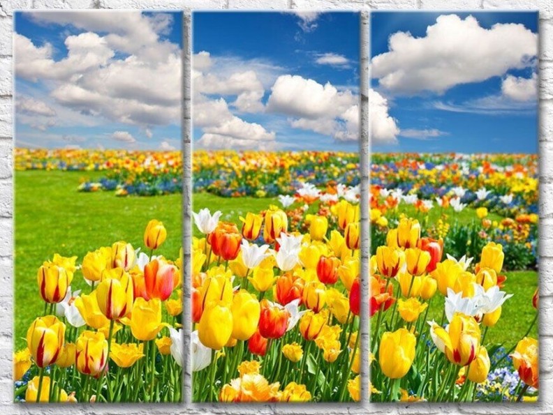 Картина Gallerix Fields of multicolored tulips against the sky with clouds (500535)