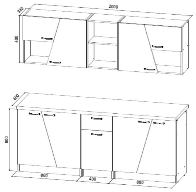 Кухонный гарнитур ML-Mobila Бриз 2.0м Белый/Дуб золотой