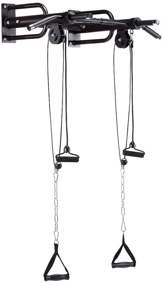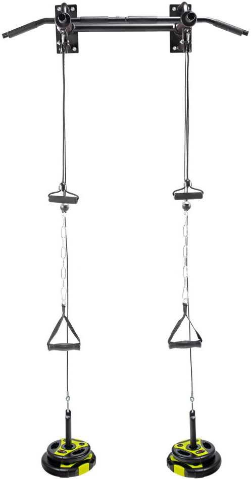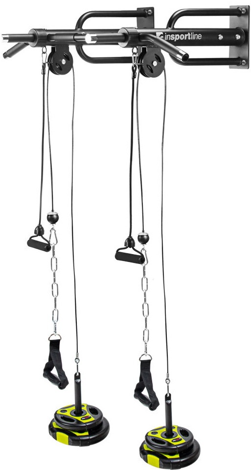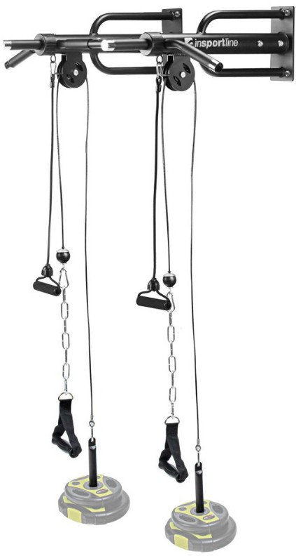 Настенный турник со шкивами inSPORTline RK180 представляет собой полноценную систему шкивов в вашем доме! Подтягивающая штанга с 3 парами захватов также оснащена двумя шкивами, которые позволяют тренироваться с весовыми пластинами, которые крепятся к шкивам с помощью адаптеров, на которых размещены гири. Главным преимуществом этой системы является то, что она позволяет использовать как обычные, так и олимпийские весовые пластины — диаметр адаптера можно изменять от 25 до 50 мм. Прикрепленный к стене 4 прочными винтами, турник имеет ограничение по весу до 150 кг.