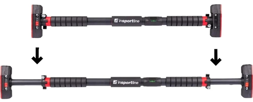 Длина турника регулируется в пределах от 79 до 107 сантиметров. Однако рекомендуемая длина составляет не более 92 сантиметров. Регулировка осуществляется просто — поворотом перекладины. Механизм быстрого фиксирования предотвращает ослабление и проворачивание турника. Таким образом, вы можете быстро и легко подстроить длину под ширину дверного проёма. Кроме того, в комплект входит съёмный пузырьковый уровень, который помогает установить турник строго горизонтально.