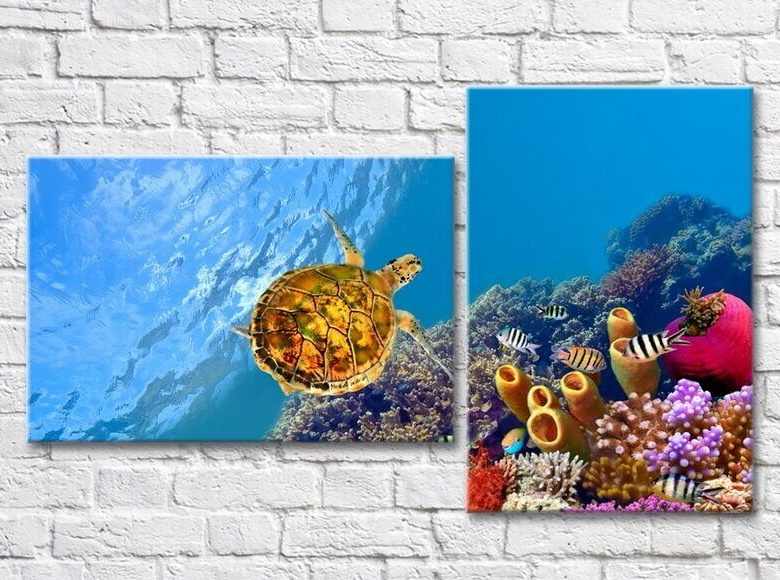 Картина ArtPoster Turtle with fishes in the sea (3453846)
