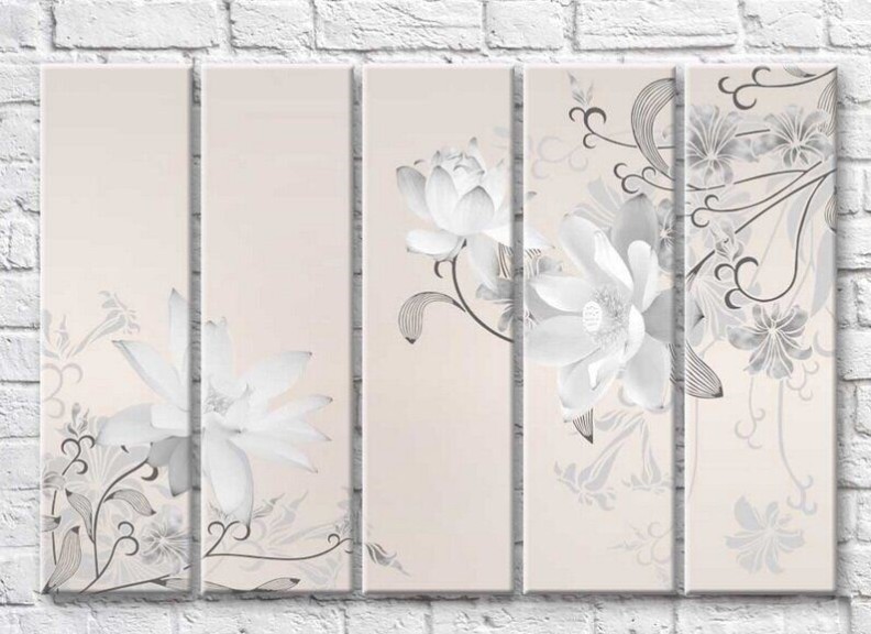 Картина Rainbow Monochrome lotuses on a light beige background (3551878)