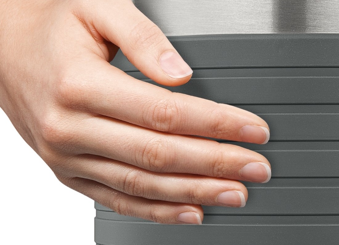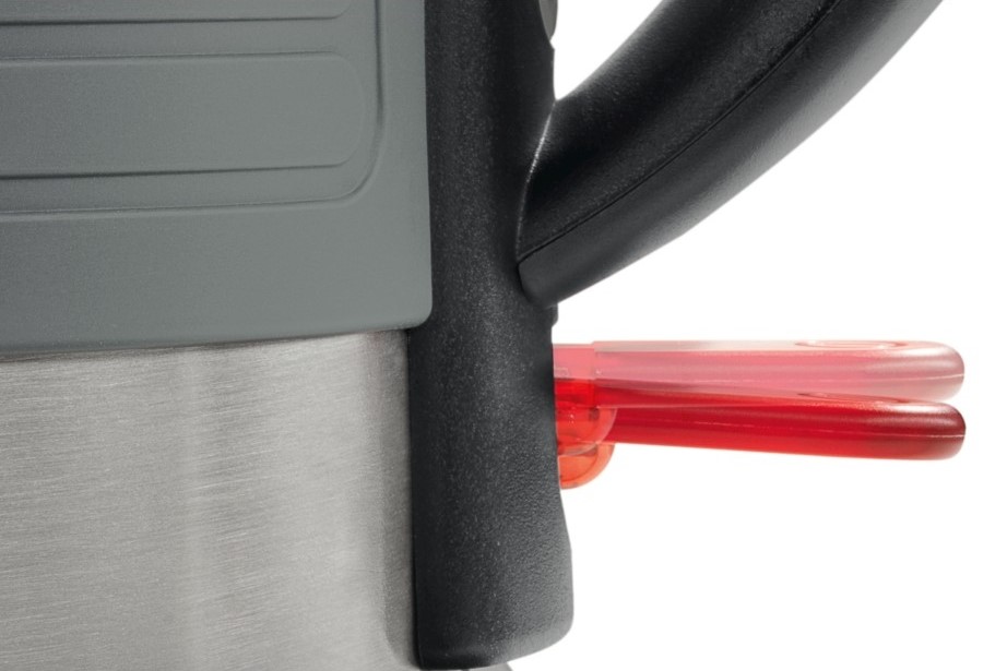 Металлический корпус электрочайника опоясывает прорезиненная накладка, которая предотвращает риск обжечься при касании к разогретым во время работы поверхностям изделия. Максимальный объём воды (1.7 л, о чём сообщает информативная шкала уровня вблизи основания ручки) чайник способен вскипятить примерно за 5 мин., за что несёт ответственность скрытый дисковый нагреватель мощностью 2200 Вт с покрытием из нержавеющей стали.