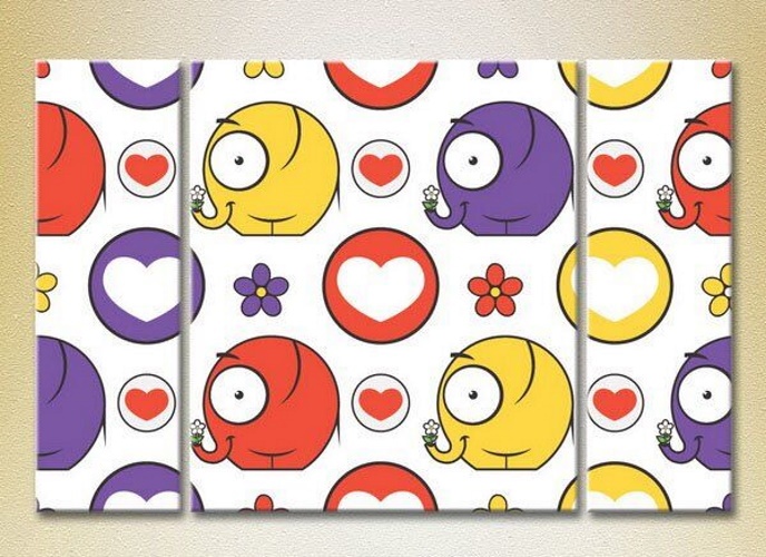 Картина Magic Color Triptych Elephants, hearts and flowers (2229694)