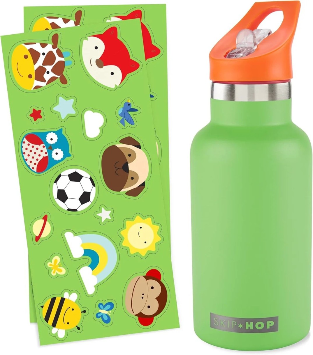 Бутылка из нержавеющей стали не только сохраняет напитки горячими или холодными, но и комплектуется более чем 30 милыми и яркими наклейками, чтобы дети могли персонализировать ее и показать свой уникальный стиль!
