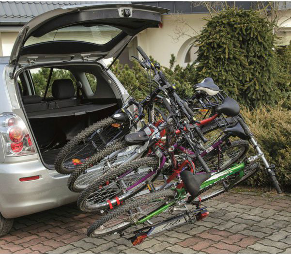 Также Велобагажник на фаркоп Amos Tytan 4 имеет функцию наклона велосипедов. Это позволяет открыть багажник автомобиля не снимая велосипеды. Однако, на некоторых автомобилях, велосипеды все равно мешают открыть крышку багажника ( например, Т5 или Берлинго).