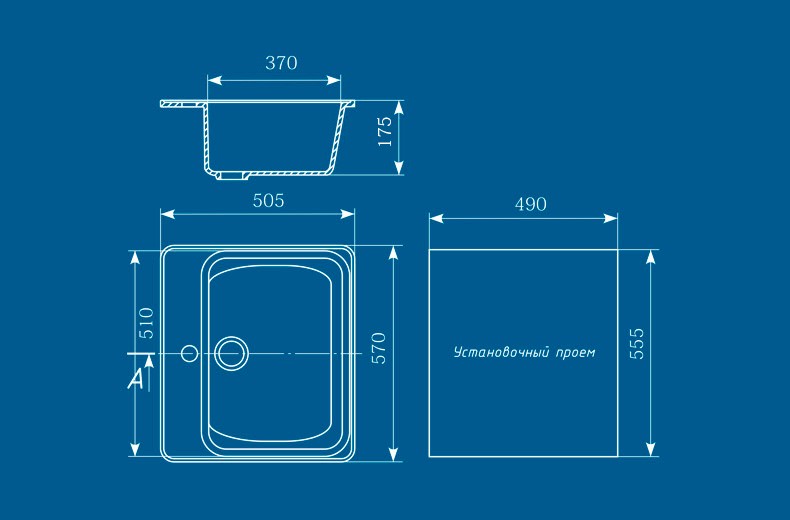 Размер мойки570x505 мм