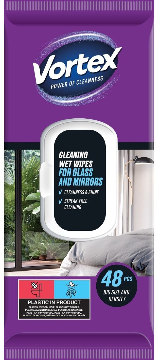 Салфетки влажные для уборки Vortex For Glass and Mirrors 48pcs
