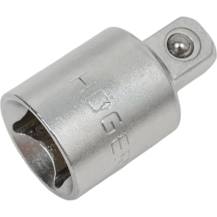 Переходник (F1/2-М3/8; 34 мм) HOEGERT TECHNIK HT1A773 обеспечивает совместную работу инструмента с разными посадочными квадратами. F - гнездо для воротка, М - штифт для торцевой головки.