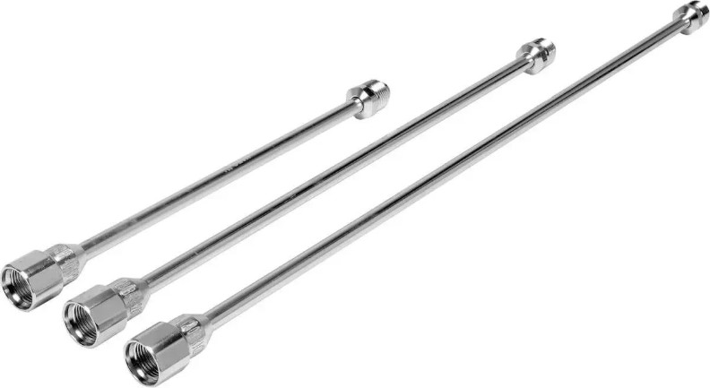 Набор из 3 удлинителей различных размеров для использования с покрасочными агрегатами. Они увеличивают рабочий радиус, облегчая окраску потолков и стен без использования лестницы или строительных лесов.